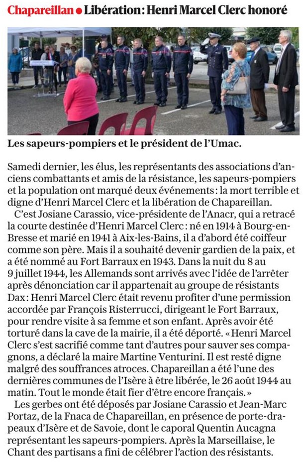 La mort d’Henri Marcel Clerc et la libération de Chapareillan ont été commémorées