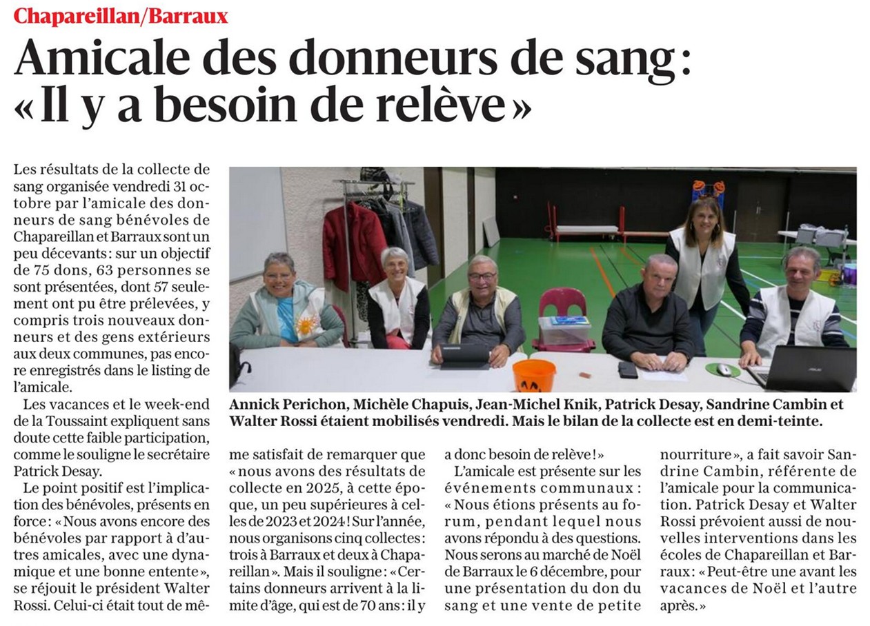 Amicale des donneurs de sang : « il y a besoin de relève »
