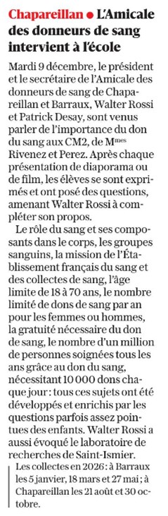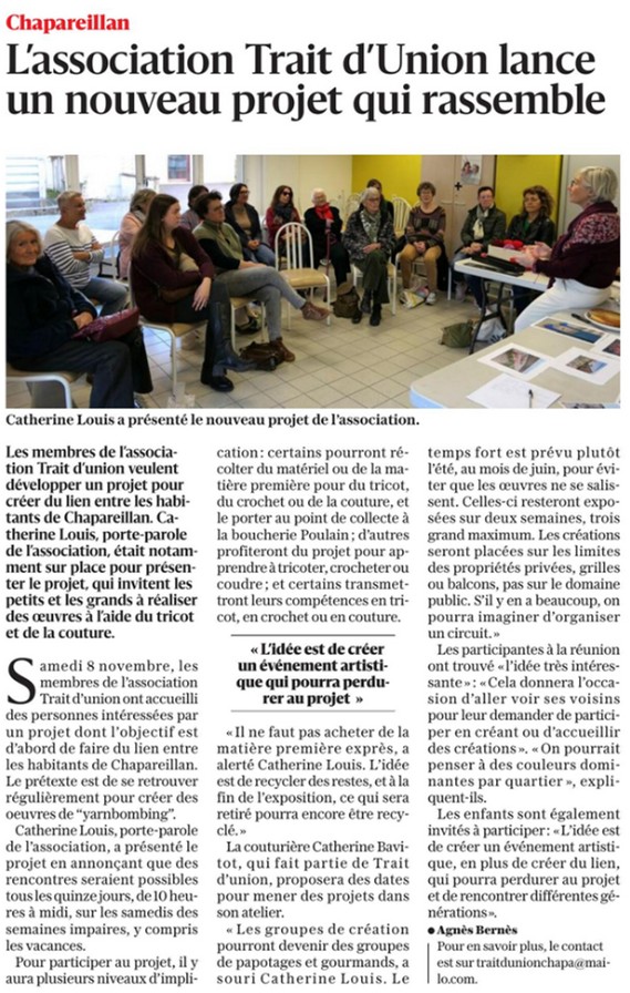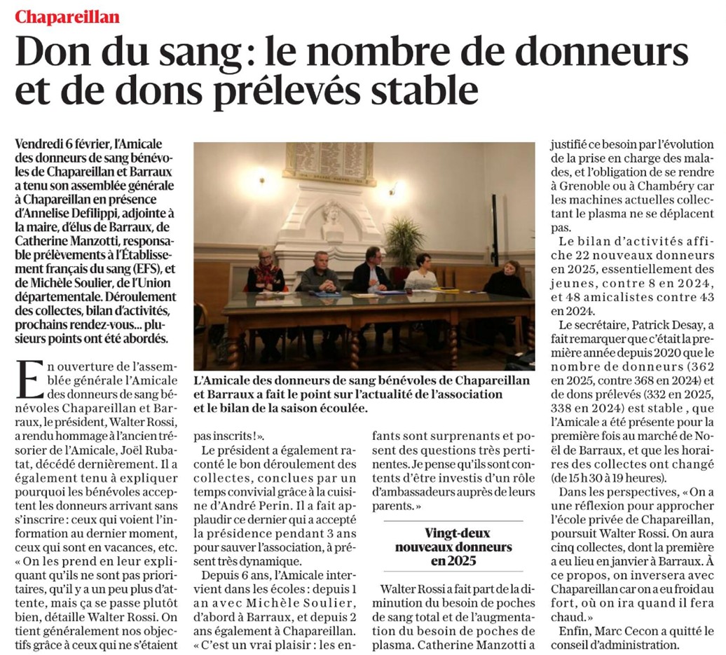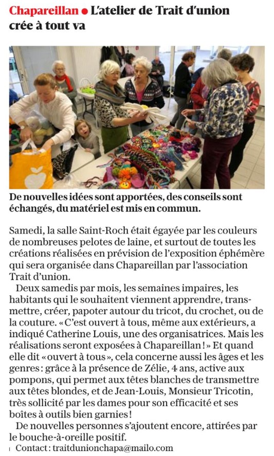 Si vous souhaitez faire passer un article, vous pouvez contacter Madame Agnès Bernès, correspondante du Dauphiné Libéré au 06 30 33 59 40